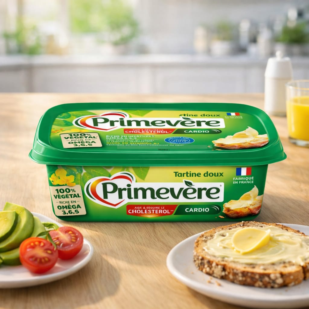 Primevère Tartine Doux – Cardio est une alternative végétale au beurre, spécialement conçue pour allier goût et bien-être. Riche en oméga 3, 6 et 9, elle participe à l’équilibre nutritionnel et aide à réduire le cholestérol dans le cadre d’une alimentation variée.