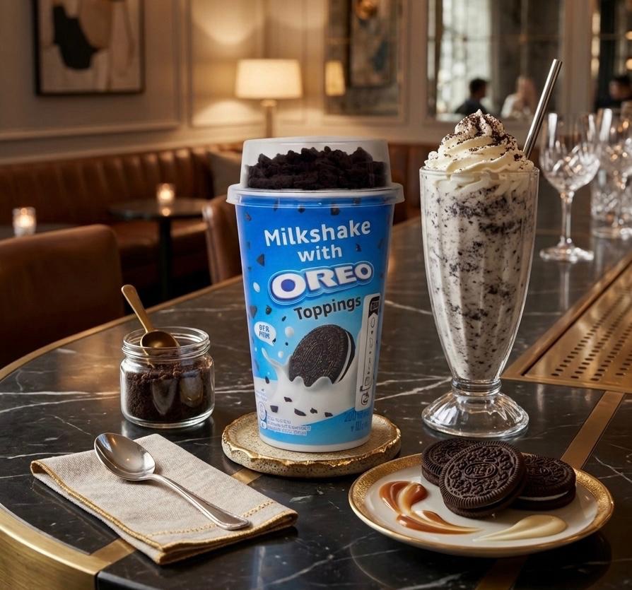 Expérience Personnalisée : Le gobelet est doté d’un compartiment supérieur contenant de généreux toppings de biscuits Oreo originaux. Mélangez-les à votre guise pour varier les textures.